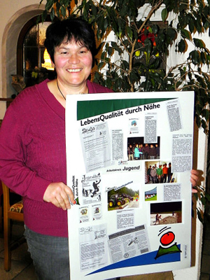 Anna Braun mit dem LQN-Plakat, das Aufschluss über die bisherigen Aktivitäten des Arbeitskreises "Jugend in Seewald" gibt.