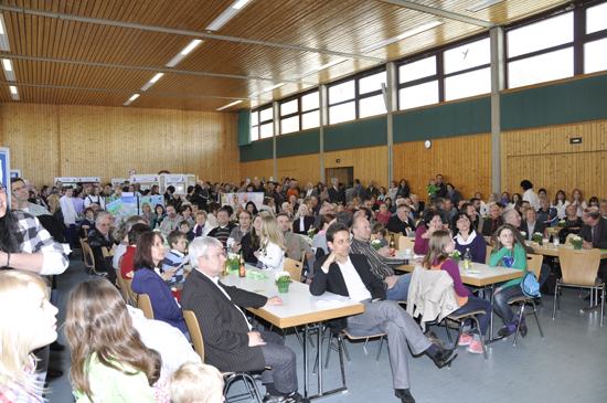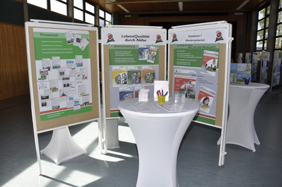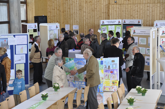 Neben Informationen über die geplanten, angedachten, bereits entstandenen und teils auch schon verwirklichten Projekte erwarteten die Gäste, umrahmt von musikalischen Beiträgen des Projektchors, des Schulorchesters und des Grundschulchors, künstlerische Werke zum Thema Lebensqualität durch Nähe.